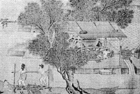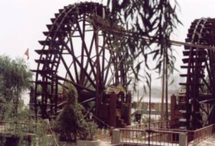 黃河水車,又名"蘭州翻車",如圖8所示,.是明代嘉靖年間進士段續所造。本世紀30到40年代,是水車引黃河水灌溉的茂盛時期,僅蘭州近郊就有160多輪。如今已被電灌所代,但不失為古老的歷史遺跡,由人們觀賞和懷古。